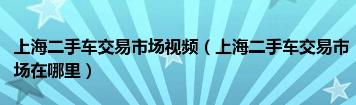 上海二手車交易市場視頻(上海二手車交易市場在哪里)