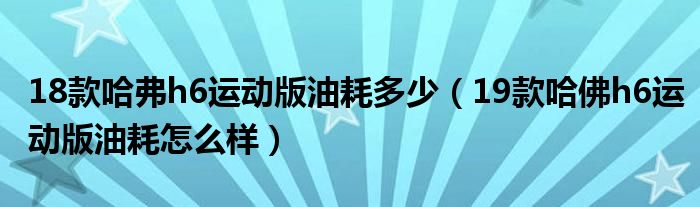 18款哈弗h6運(yùn)動版油耗多少(19款哈佛h6運(yùn)動版油耗怎么樣)