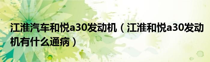 江淮汽車和悅a30發(fā)動機(jī)(江淮和悅a30發(fā)動機(jī)有什么通病)