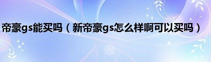 帝豪gs能買嗎(新帝豪gs怎么樣啊可以買嗎)