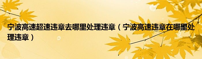 寧波高速超速違章去哪里處理違章(寧波高速違章在哪里處理違章)