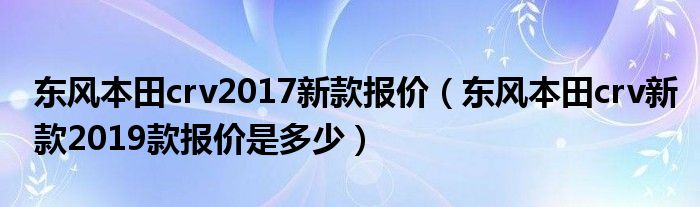 東風(fēng)本田crv2017新款報價(東風(fēng)本田crv新款2019款報價是多少)