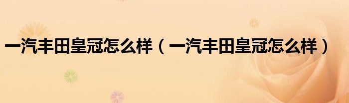 一汽豐田皇冠怎么樣(一汽豐田皇冠怎么樣)