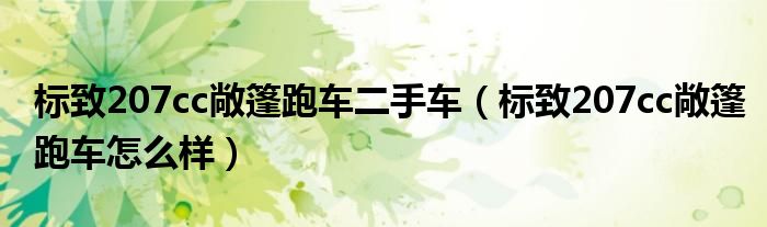 標致207cc敞篷跑車二手車(標致207cc敞篷跑車怎么樣)