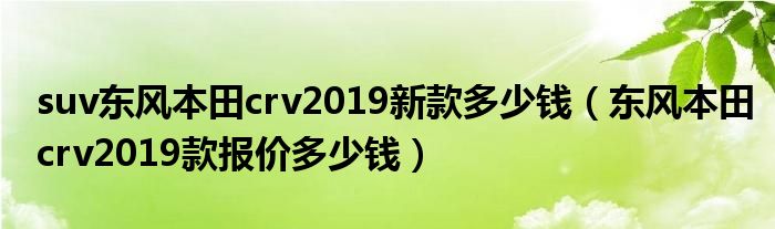 suv東風(fēng)本田crv2019新款多少錢(東風(fēng)本田crv2019款報(bào)價(jià)多少錢)