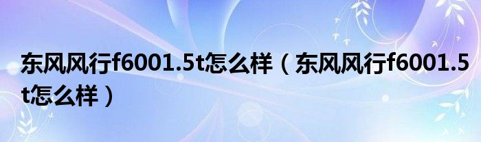東風風行f6001.5t怎么樣(東風風行f6001.5t怎么樣)