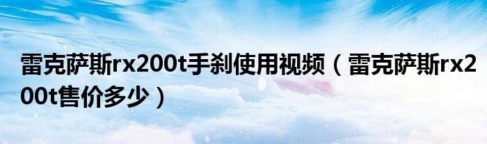 雷克薩斯rx200t手剎使用視頻(雷克薩斯rx200t售價(jià)多少)