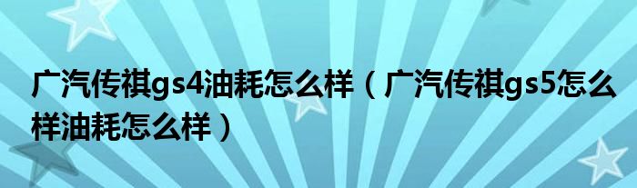 廣汽傳祺gs4油耗怎么樣(廣汽傳祺gs5怎么樣油耗怎么樣)