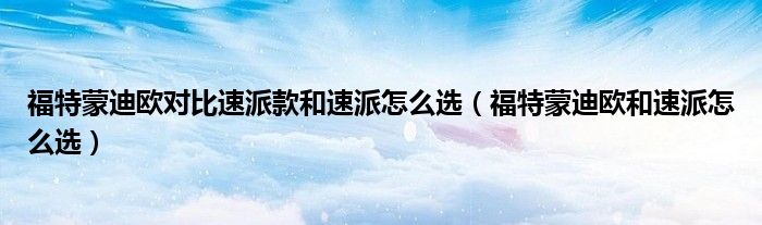 大家好,陽陽來為大家講解下。福特蒙迪歐對(duì)比速派款和速派怎么選,福特蒙迪歐和速派怎么選很多人還不知道,現(xiàn)在讓我們一起來看看吧!