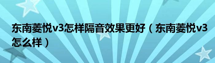 東南菱悅v3怎樣隔音效果更好(東南菱悅v3怎么樣)