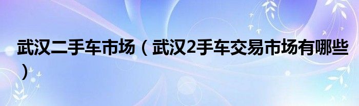 武漢目前有愛之家長豐二手車市場,竹葉山二手車市場,漢口北二手車,申官渡二手車市場,紳寶二手車市場,1號車市,這幾家都是很大的二手車市