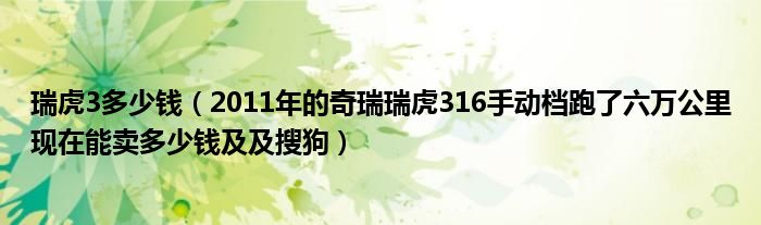 瑞虎3多少錢(2011年的奇瑞瑞虎316手動檔跑了六萬公里現(xiàn)在能賣多少錢及及搜狗)