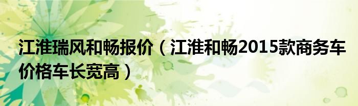 江淮瑞風(fēng)和暢報價(江淮和暢2015款商務(wù)車價格車長寬高)