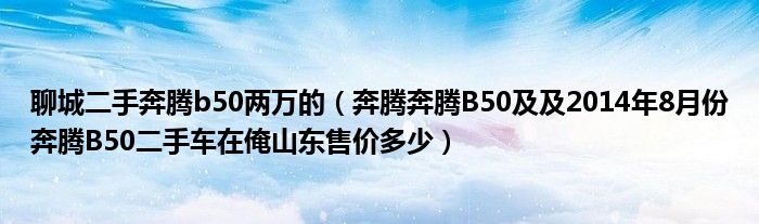 大家好,小常來為大家解答以下問題,對于聊城二手奔騰b50兩萬的,奔騰奔騰B50及及2014年8月份奔騰B50二手車在俺山東售價多少很多人還不知道,今天讓我們一起來看看吧!