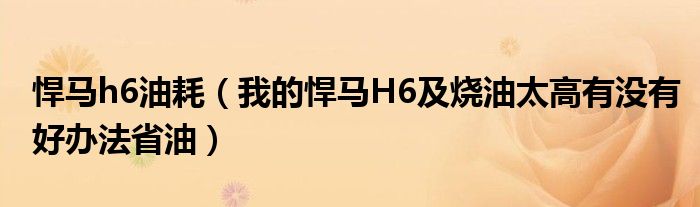 悍馬h6油耗(我的悍馬H6及燒油太高有沒有好辦法省油)