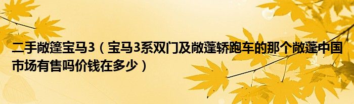 二手敞篷寶馬3(寶馬3系雙門及敞蓬轎跑車的那個(gè)敞蓬中國(guó)市場(chǎng)有售嗎價(jià)錢在多少)