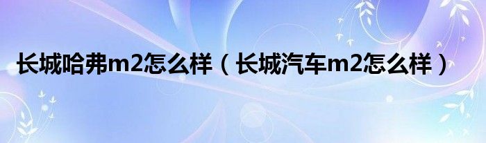 長城哈弗m2怎么樣(長城汽車m2怎么樣)