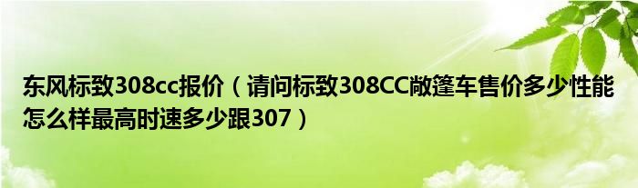 東風標致308cc報價(請問標致308CC敞篷車售價多少性能怎么樣最高時速多少跟307)