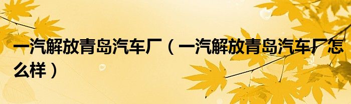 一汽解放青島汽車廠(一汽解放青島汽車廠怎么樣)