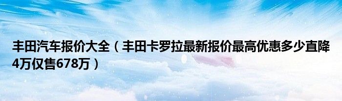 豐田汽車報(bào)價(jià)大全(豐田卡羅拉最新報(bào)價(jià)最高優(yōu)惠多少直降4萬僅售678萬)