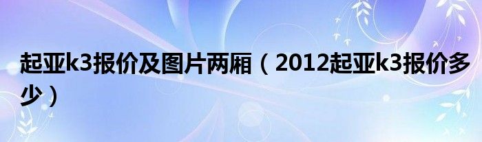 大家好,小常來為大家解答以下問題,對于起亞k3報價及圖片兩廂,2012起亞k3報價多少很多人還不知道,今天讓我們一起來看看吧!