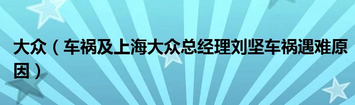 大眾(車禍及上海大眾總經(jīng)理劉堅(jiān)車禍遇難原因)