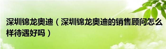 深圳錦龍奧迪(深圳錦龍奧迪的銷售顧問怎么樣待遇好嗎)
