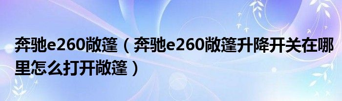 奔馳e260敞篷(奔馳e260敞篷升降開關(guān)在哪里怎么打開敞篷)