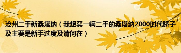 滄州二手新桑塔納(我想買一輛二手的桑塔納2000時(shí)代驕子及主要是新手過度及請問在)