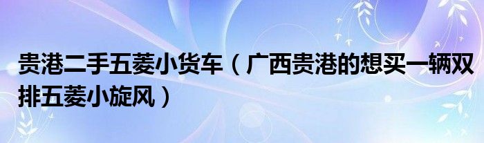 貴港二手五菱小貨車(廣西貴港的想買一輛雙排五菱小旋風(fēng))