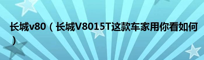 長(zhǎng)城v80(長(zhǎng)城V8015T這款車家用你看如何)