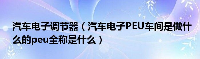 汽車電子調(diào)節(jié)器(汽車電子PEU車間是做什么的peu全稱是什么)