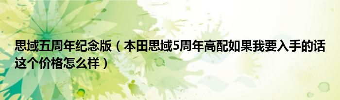 思域五周年紀念版(本田思域5周年高配如果我要入手的話這個價格怎么樣)