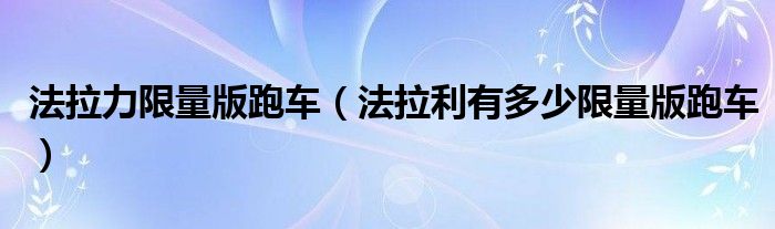 大家好,小常來(lái)為大家解答以下問(wèn)題,對(duì)于法拉力限量版跑車,法拉利有多少限量版跑車很多人還不知道,今天讓我們一起來(lái)看看吧!