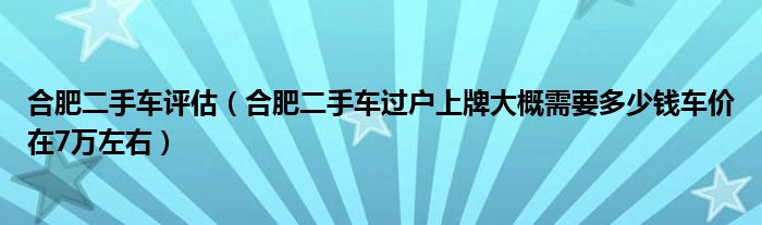 合肥二手車評(píng)估(合肥二手車過戶上牌大概需要多少錢車價(jià)在7萬左右)