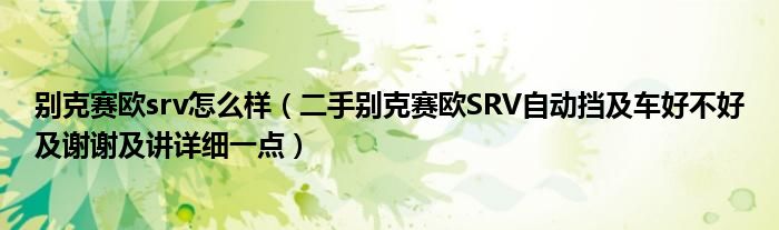 別克賽歐srv怎么樣(二手別克賽歐SRV自動擋及車好不好及謝謝及講詳細(xì)一點)