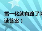 雪一化就有路了閱讀理解,雪一化就有路了閱讀答案這個(gè)很多人還不知道,小飛來為大家解答以上的問題。現(xiàn)在讓我們一起來看看吧!1、19 通讀全 瀏覽全文>>