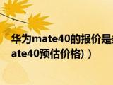 大家好,小常來為大家解答以上問題。華為mate40的報價是多少,華為mate40預(yù)計價格(華為mate40預(yù)估價格)很多人還不知道,現(xiàn)在讓我們一起來看 瀏覽全文>>