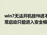 大家好,今天小悅來為大家解答以上問題。win7無(wú)法開機(jī)按f8進(jìn)不了安全模式,Win7電腦開機(jī)無(wú)法正常啟動(dòng)只能進(jìn)入安全模式怎么解決很多人還不知 瀏覽全文>>