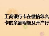 大家好,小太來(lái)為大家解答以上問(wèn)題。工商銀行卡在微信怎么查余額,如何在微信中查看工商銀行卡的余額明細(xì)及開(kāi)戶行很多人還不知道,現(xiàn)在讓我 瀏覽全文>>