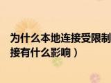 大家好,雨雨來為大家解答以上問題,為什么本地連接受限制或無法連接,本地連接受限制或無連接有什么影響很多人還不知道,現(xiàn)在讓我們一起來 瀏覽全文>>