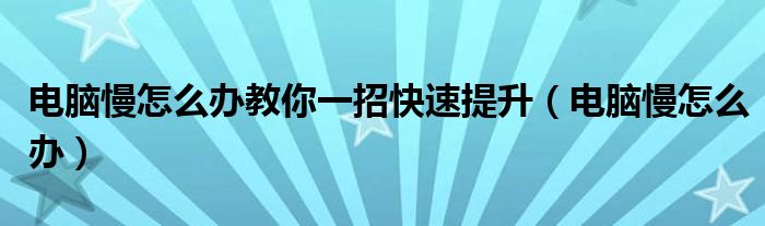 電腦慢怎么辦教你一招快速提升(電腦慢怎么辦)