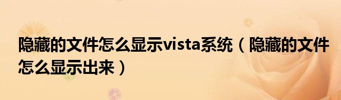 隱藏的文件怎么顯示vista系統(tǒng)(隱藏的文件怎么顯示出來)