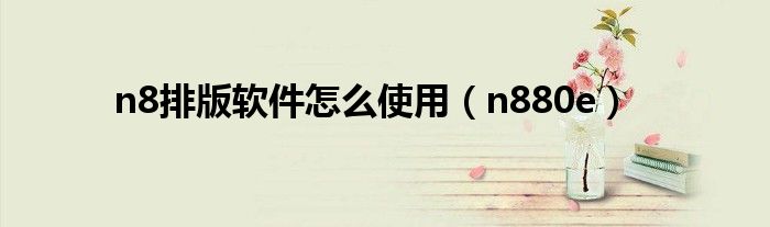 n8排版軟件怎么使用(n880e)