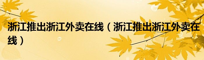 浙江推出浙江外賣在線(浙江推出浙江外賣在線)