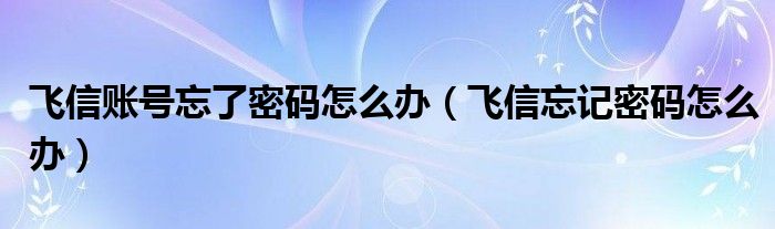 飛信賬號(hào)忘了密碼怎么辦(飛信忘記密碼怎么辦)