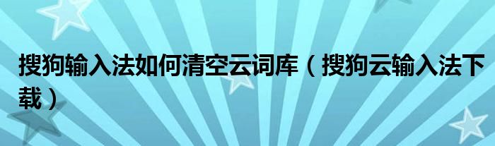 搜狗輸入法如何清空云詞庫(搜狗云輸入法下載)