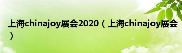 大家好,雨雨來為大家解答以上問題,上海chinajoy展會2020,上海chinajoy展會很多人還不知道,現(xiàn)在讓我們一起來看看吧!