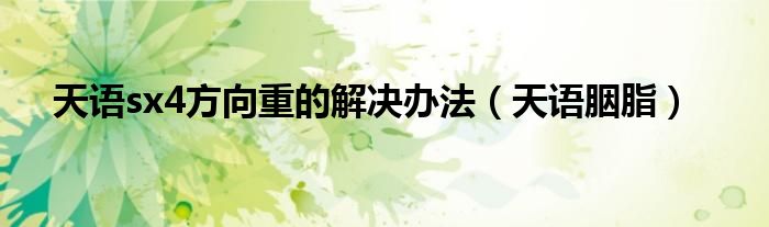 大家好,雨雨來為大家解答以上問題,天語sx4方向重的解決辦法,天語胭脂很多人還不知道,現(xiàn)在讓我們一起來看看吧!