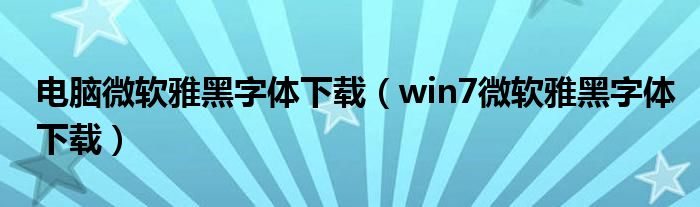 電腦微軟雅黑字體下載(win7微軟雅黑字體下載)